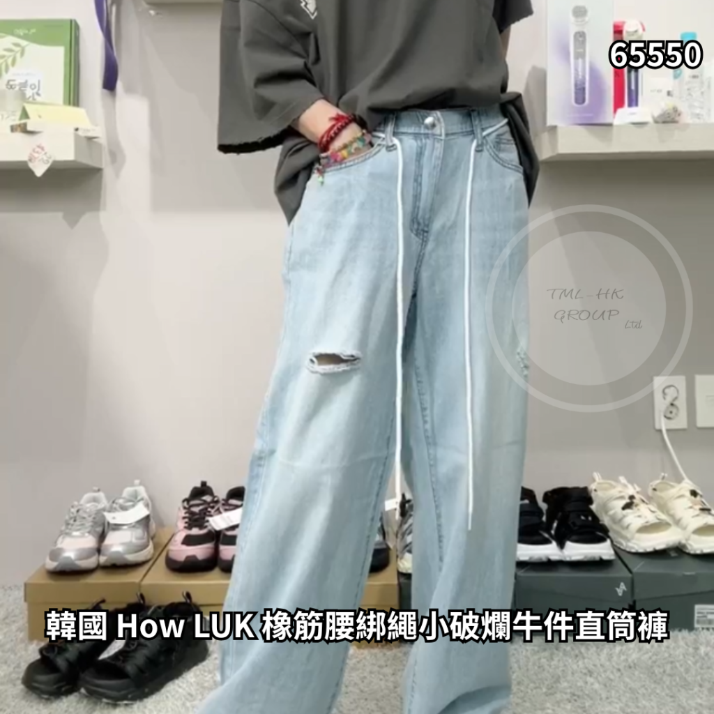 韓國 How LUK 橡筋腰綁繩小破爛牛件直筒褲(3084)【30/4截單 | 預計6月中至尾到貨 | 20260425B(65550.)】