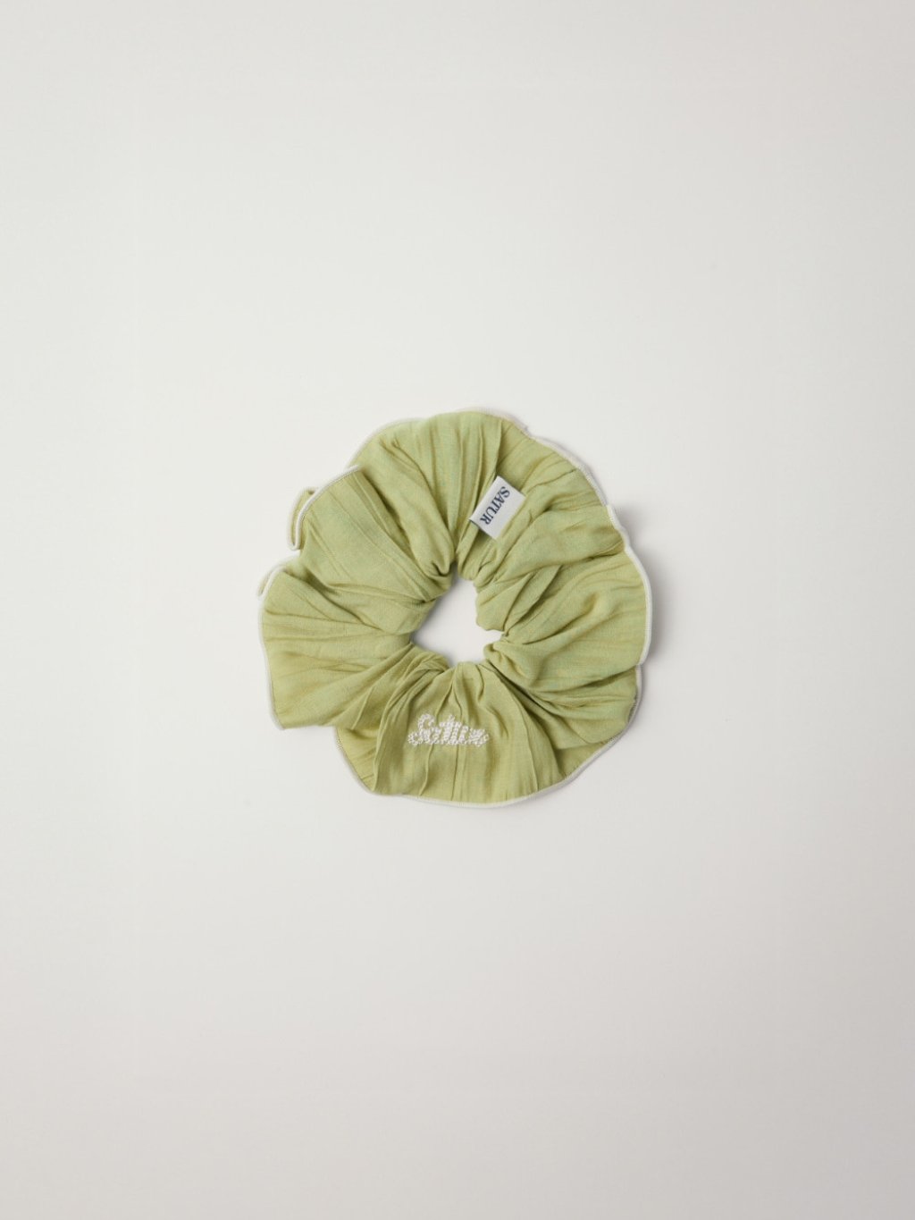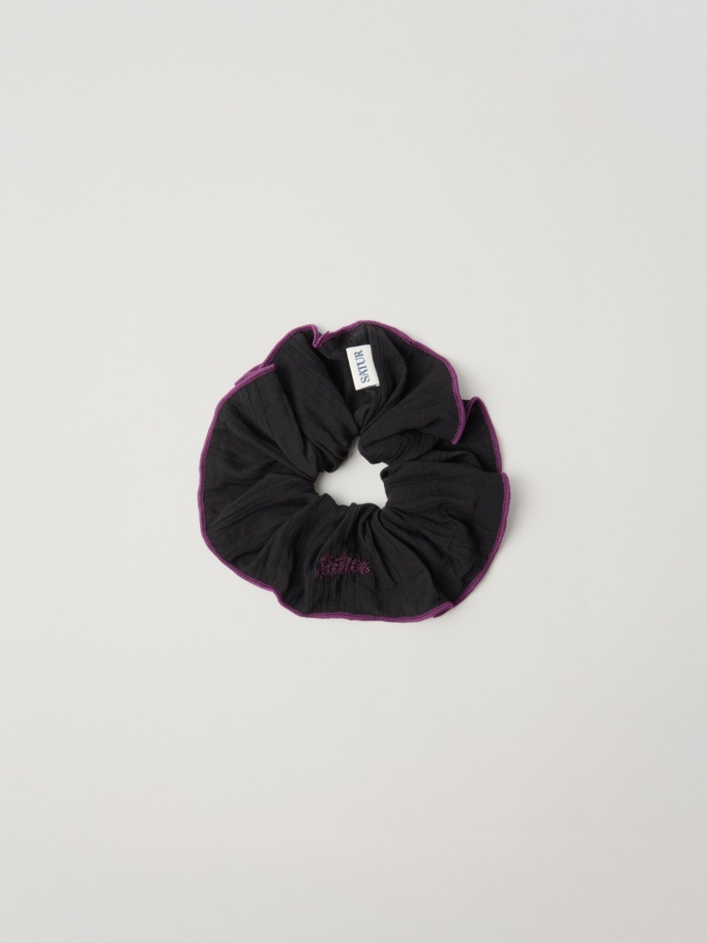 韓國 SATUR (W) Wrinkle Color Block Scrunchie 小標潦草字髮圈(SA262WAC01)【2/5截單 | 預計6月初至中到貨 | 20260427A(65576.)】