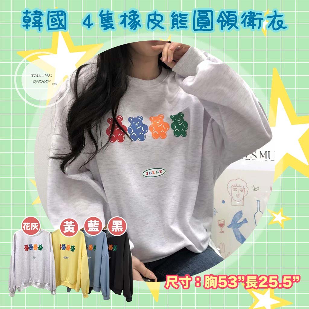 韓國 4隻橡皮熊圓領衛衣 【現貨| 預計2-3星期派貨 | 20260110Z(6909.)】