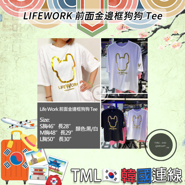 韓國 LIFE WORK 前面金邊框狗狗 Tee (白)(LW222TS009) 【現貨 | 預計2-3星期派貨 | 20260410Z(9669.)】