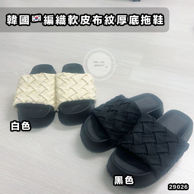 29026.🌟2/5月韓國🇰🇷連線🌟韓國編織軟皮布紋厚底拖鞋⚠️6/5截單⚠️預計6月中到貨❣️