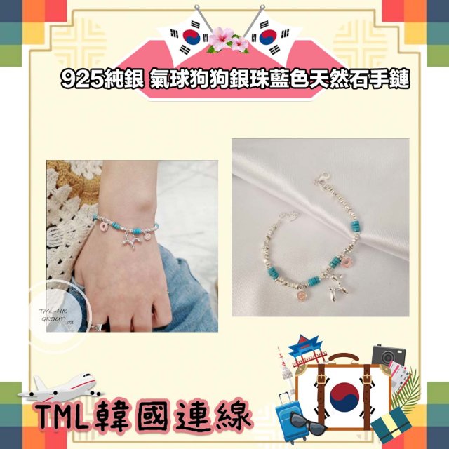 🐥執雞🐥韓國 925純銀 氣球狗狗銀珠藍色天然石手鏈 ⚠️數量有限⚠️先入先得⚠️售完即止⚠️ (11701.)】