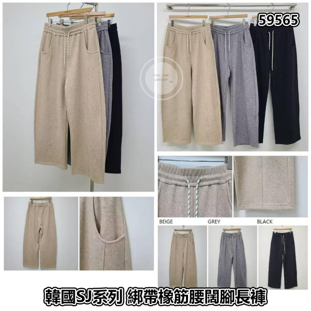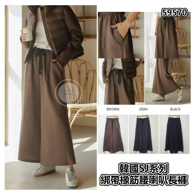 韓國SJ系列 綁帶橡筋腰闊腳長褲【5件包郵 | 23/11截單 | 預計12月尾到貨 | 20251118B(59565.)】