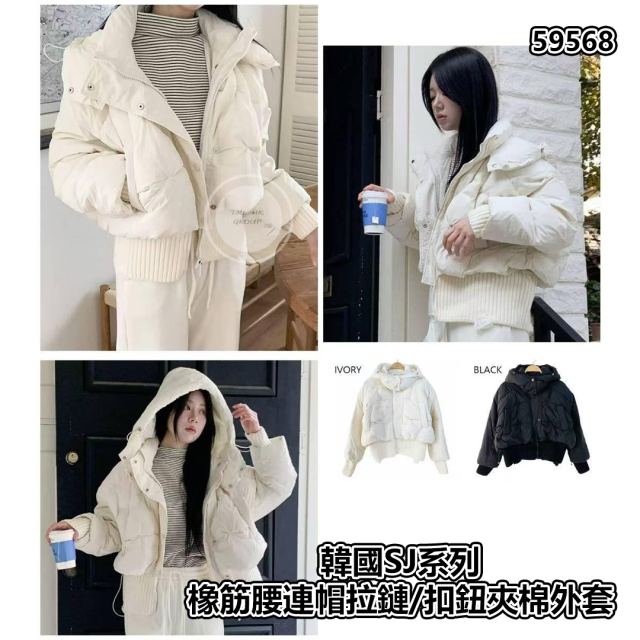 韓國SJ系列 橡筋腰連帽拉鏈/扣鈕羽絨外套【5件包郵 | 23/11截單 | 預計12月尾到貨 | 20251118B(59568.)】