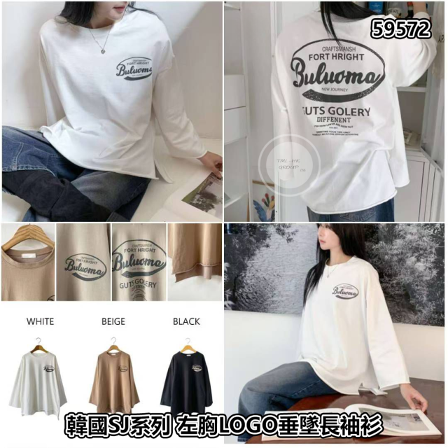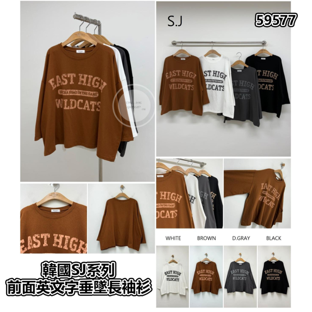 韓國SJ系列 前面英文字垂墜長袖衫【5件包郵 | 23/11截單 | 預計12月尾到貨 | 20251118B(59577.)】