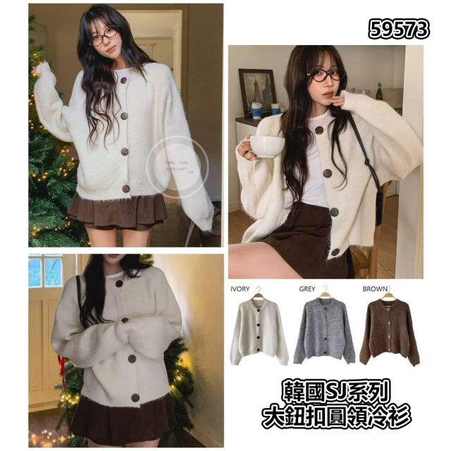 韓國SJ系列 大鈕扣圓領冷衫【5件包郵 | 23/11截單 | 預計12月尾到貨 | 20251118B(59573.)】