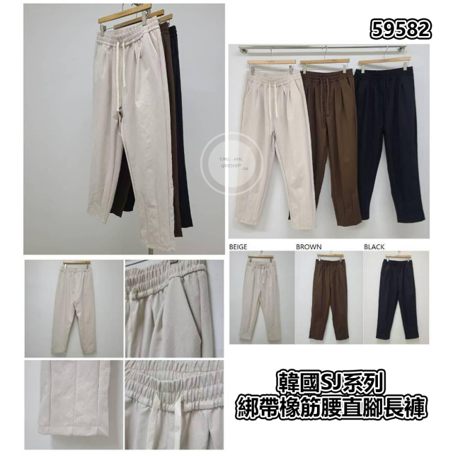 韓國SJ系列 綁帶橡筋腰直腳長褲【5件包郵 | 23/11截單 | 預計12月尾到貨 | 20251118B(59582.)】