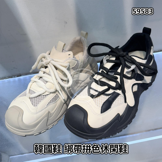 韓國鞋 綁帶拼色厚底休閑鞋【23/11截單 | 預計12月尾到貨 | 20251118B(59583.)】