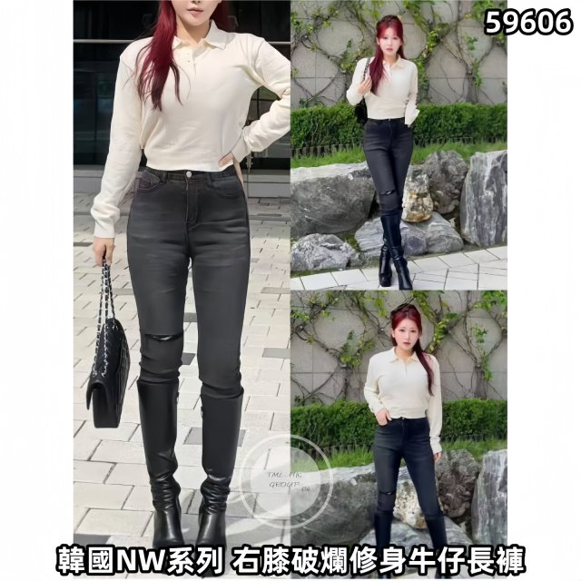 韓國NW系列 右膝破爛修身牛仔長褲(002)【5件包郵 | 26/11截單 | 預計12月尾至1月初到貨 | 20251121B(59606.)】