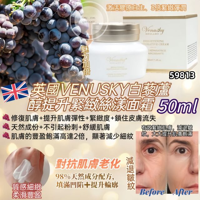 英國 VENUSKY白藜蘆醇提升緊緻絲漾面霜 50ml【買滿$1000包郵 | 9/12截單 | 預計12月尾到貨 | 20251204(59813.)】
