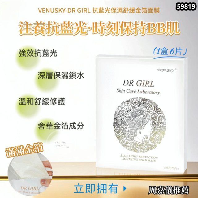 英國 VENUSKY DR GIRL 抗藍光保濕舒緩金箔面膜 (6片/盒)【買滿$1000包郵 | 9/12截單 | 預計12月尾到貨 | 20251204(59819.)】