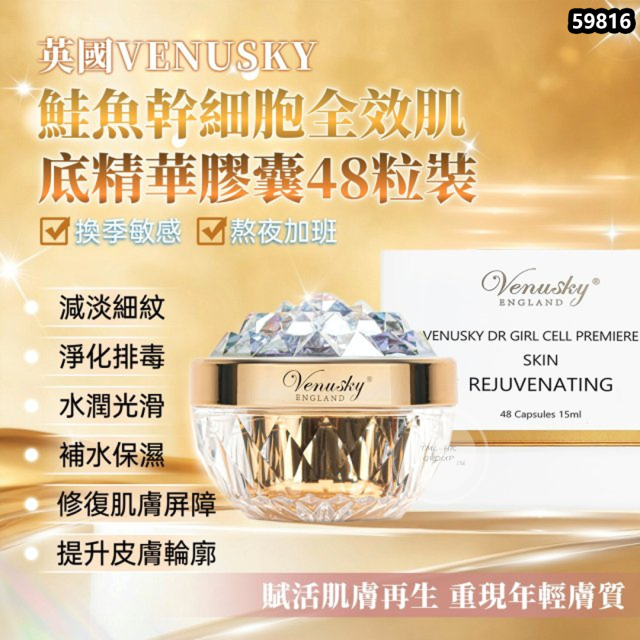 英國 Venusky 鮭魚幹細胞全效肌底精華面霜膠囊48粒【買滿$1000包郵 | 9/12截單 | 預計12月尾到貨 | 20251204(59817.)】