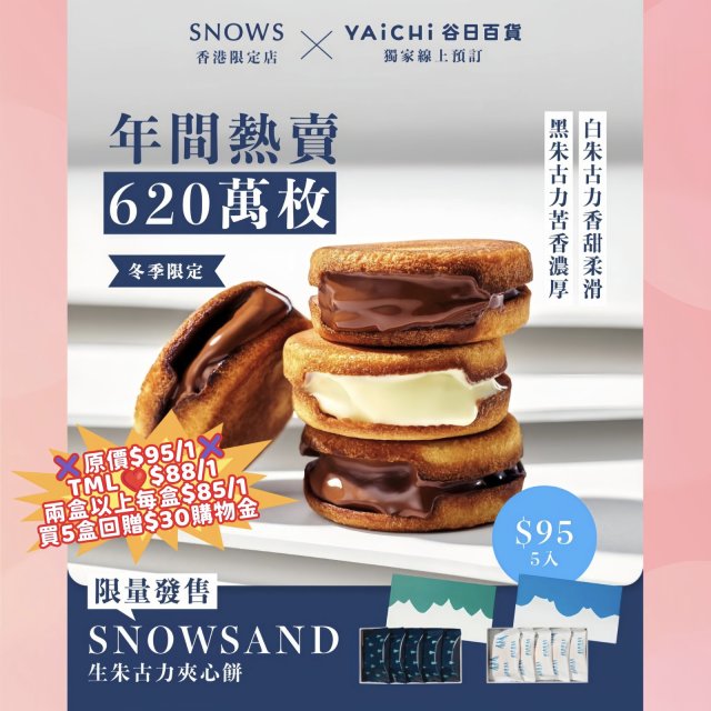 日本 SNOWSAND 生朱古力夾心餅(黑朱古力/5入)【26/2截單 | 預計3月2號開始派貨 | 20260221A(62524.)】