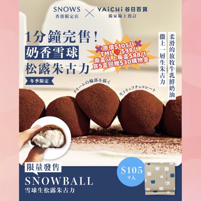 日本 SNOW BALL 雪球生松露朱古力 (9入)【26/2截單 | 預計3月2號開始派貨 | 20260221A(62525.)】