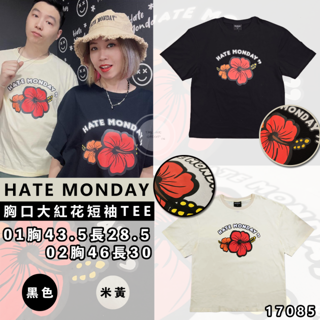 17085.HATE MONDAY 胸口大紅花短袖TEE(S2304T01)
