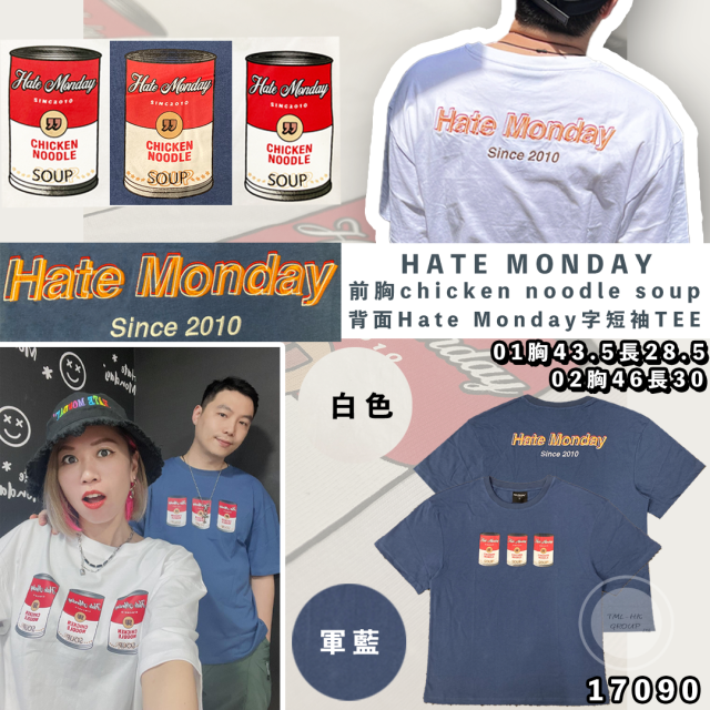 17090. HATE MONDAY前胸chicken noodle soup背面Hate Monday字短袖TEE(S2304T07)