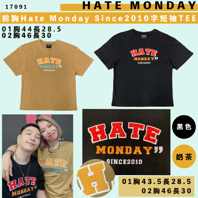 17091.HATE MONDAY 前胸Hate Monday Since2010字短袖TEE(S2304T05)