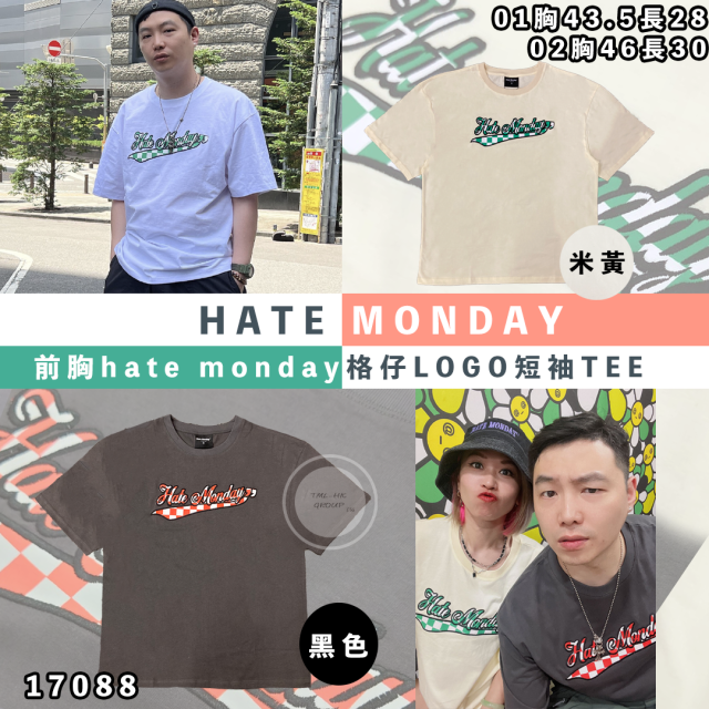17088.HATE MONDAY前胸hate monday格仔LOGO短袖TEE(S2304T06)