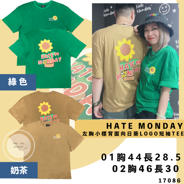 17086.HATE MONDAY左胸小標背面向日葵LOGO短袖TEE(S2304T02)