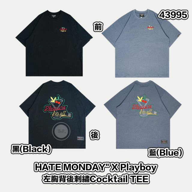 43995. HATE MONDAY" X Playboy 左胸背後刺繡Cocktail TEE(PBHMS25T78)⚠️現貨在倉,隨單派送