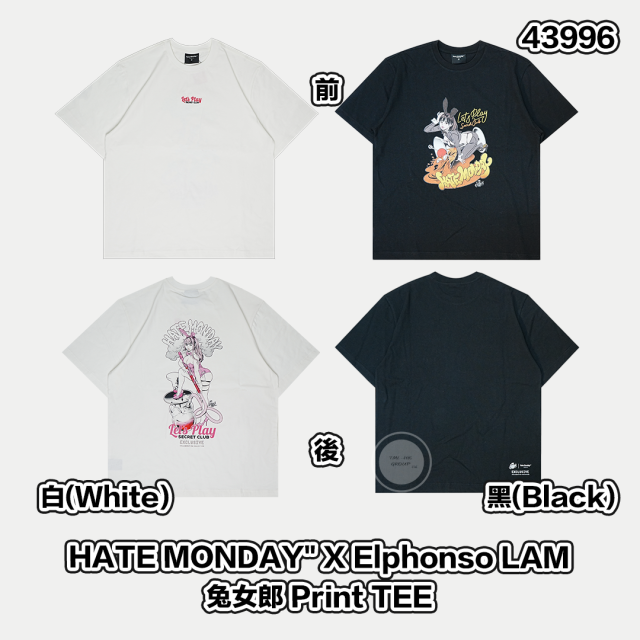 43996. HATE MONDAY" X Elphonso LAM 兔女郎 Print TEE(PBHMS25T77) ⚠️現貨在倉,隨單派送