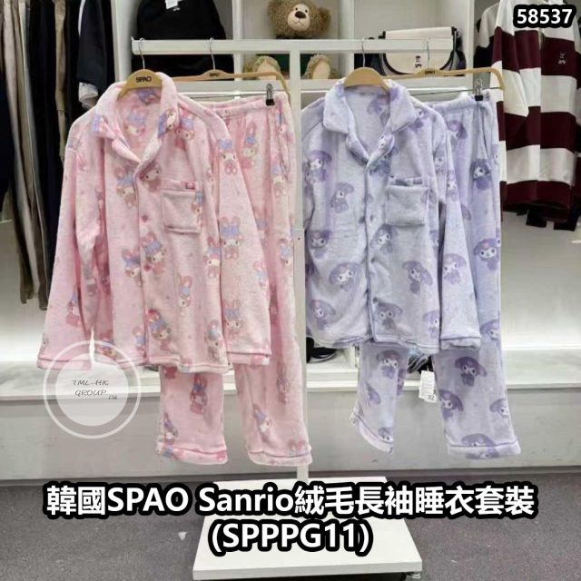 韓國SPAO Sanrio絨毛長袖睡衣套裝(SPPPG11)【 2/11截單 | 預計12月初至中到貨 | 20251028A(58537.)】