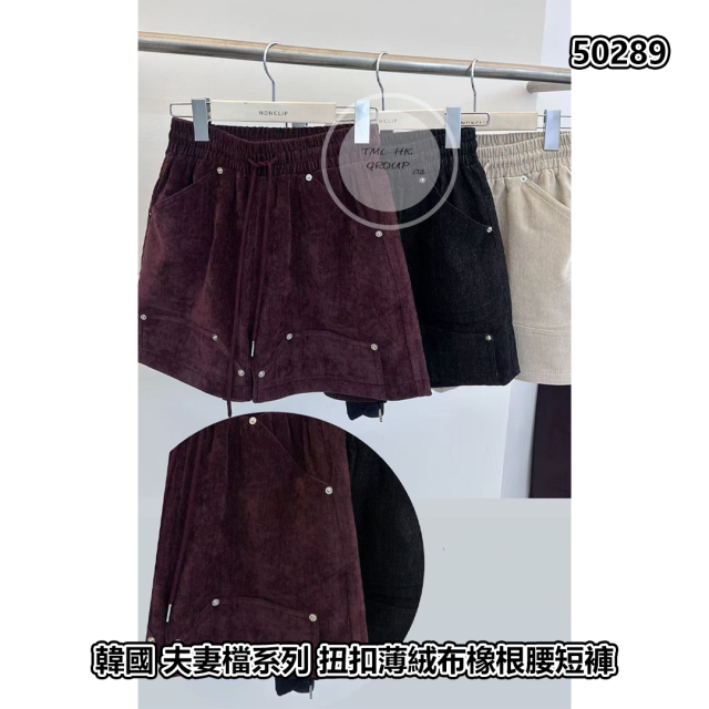 韓國 夫妻檔系列 扭扣薄絨布橡根腰短褲【買滿5件包郵 | 28/11截單 | 預計12月尾至1月初到貨 | 20251123B(50289.)】