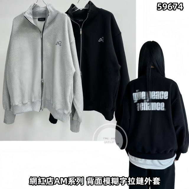 東大門網紅店AM系列 背面模糊字拉鏈外套【5件包郵 | 30/11截單 | 預計1月初到貨 | 20251125B(59674.)】
